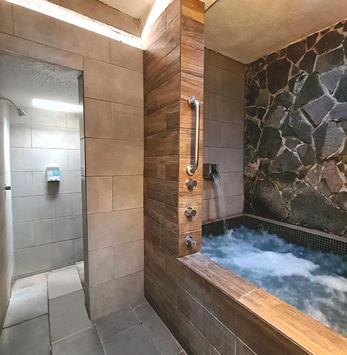 Vapor termal y eucalipto 100% natural. Cada Sauna Termal cuenta con un área privada para cambiarse y una ducha de agua termal fría, la cual limpia la piel de impurezas.
